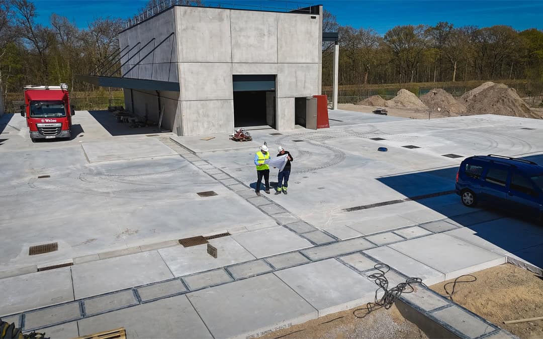 Voor Kebro betekende dit project een brede opdracht. In de grote piloothal realiseerden we een naadloze gepolierde vloer die zowel technisch als esthetisch aan hoge eisen moest voldoen. Tegelijk namen we de volledige buitenomgeving onder onze hoede, van grondwerken tot leidingwerk, opvangputten, steenslagfunderingen, betonverhardingen en de volledige omgevingsaanleg met groenvoorziening. Dit project werd gebouwd in nauwe samenwerking met zusterbedrijf Topo Terra, waarmee een vlotte integratie tussen opmeting, voorbereiding en uitvoering gegarandeerd bleef.